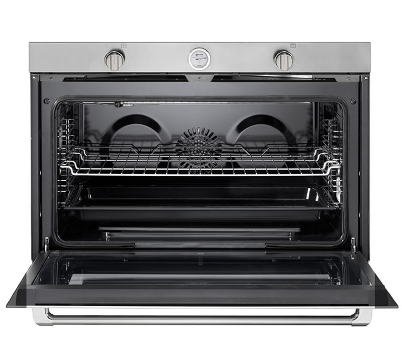 Verona’s Exclusive 30” Gas Built-in Oven has been re-designed and is now more powerful and stylish than ever before. Featuring Verona’s exclusive ‘GIANT’ oven cavity, this gas powered built-in oven is built for performance. A beveled soft-close door adds a sleek aesthetic, and included glide rack supports are an added luxury. The oven also features a temperature indicator and and stainless steel round handle for added style.
