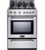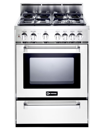 Verona gives you all of the power of a full size professional range for a small space kitchen. The 24 inch Gas range offers a versatile selection of both high and low power sealed burners that will handle any cooking chore. The turbo electric convection fan provides even heat throughout the oven cavity and will bake foods up to 25 percent faster than a conventional oven.