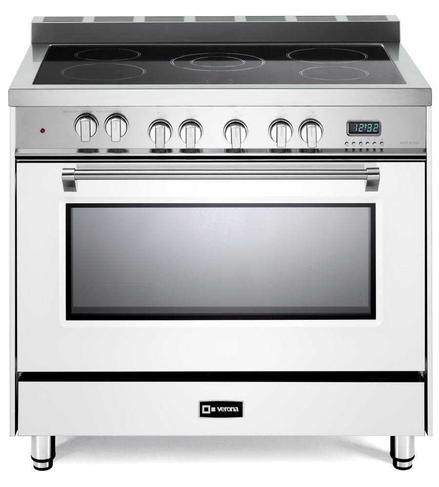 Verona introduces an Electric range to the Prestige Collection of 36-inch Ranges, delivering high-powered capabilities with an upgraded pro-style look. The intelligently designed 5-burner black ceramic cooktop features full-sized elements to accommodate pots of any size and includes a multi-tasking dual element that ranges from PrefectSimmer™ (700W) to InstaBoil™ (2100W) settings in a matter of moments. The large, energy-efficient electric ovens are equipped with a spacious capacity, including a full-width storage compartment. A powerful multi-function convection oven with seven cooking modes to assist in preparing meals quicker and tastier.