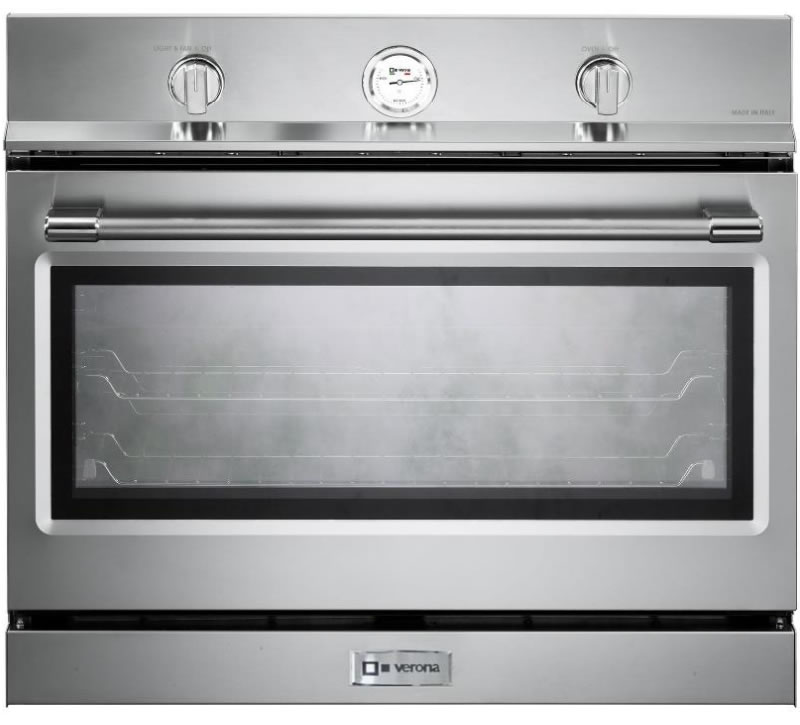 Verona’s Exclusive 30” Gas Built-in Oven has been re-designed and is now more powerful and stylish than ever before. Featuring Verona’s exclusive ‘GIANT’ oven cavity, this gas powered built-in oven is built for performance. A beveled soft-close door adds a sleek aesthetic, and included glide rack supports are an added luxury. The oven also features a temperature indicator and and stainless steel round handle for added style.