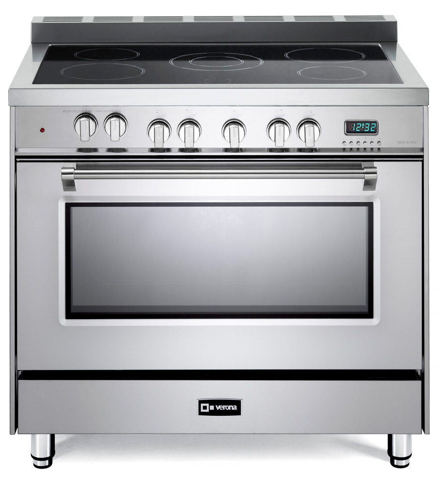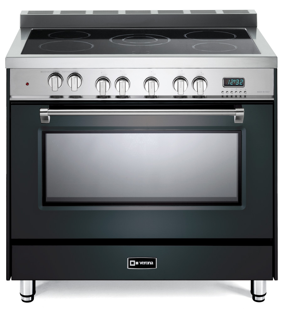 Verona introduces an Electric range to the Prestige Collection of 36-inch Ranges, delivering high-powered capabilities with an upgraded pro-style look. The intelligently designed 5-burner black ceramic cooktop features full-sized elements to accommodate pots of any size and includes a multi-tasking dual element that ranges from PrefectSimmer™ (700W) to InstaBoil™ (2100W) settings in a matter of moments. The large, energy-efficient electric ovens are equipped with a spacious capacity, including a full-width storage compartment. A powerful multi-function convection oven with seven cooking modes to assist in preparing meals quicker and tastier.